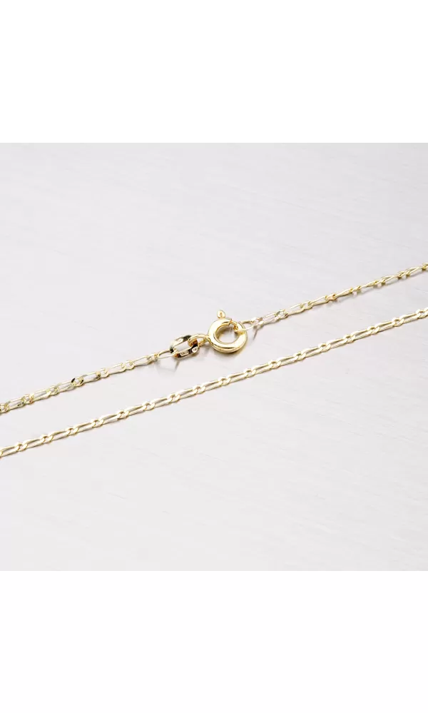 Klasika v podobe retiazky typu Figaro je v silnejšej verzii obľúbená najmä u pánov. Retiazka je zložená z menších a väčších očiek, ktoré sú do seba prepojené. Pre jeho nadčasovosť sa radí medzi unisex retiazky. Retiazka sa príjemne nosí a je pevná. Retiazka je vyrobená zo žltého štrnástich karátového zlata 585/000 v lesklej povrchovej úprave so zapínaním na perový krúžok. Urobte si radosť a ozdobte sa touto retiazkou. Lesklé prevedenie podporuje zlaté odlesky a luxusný vzhľad retiazky.