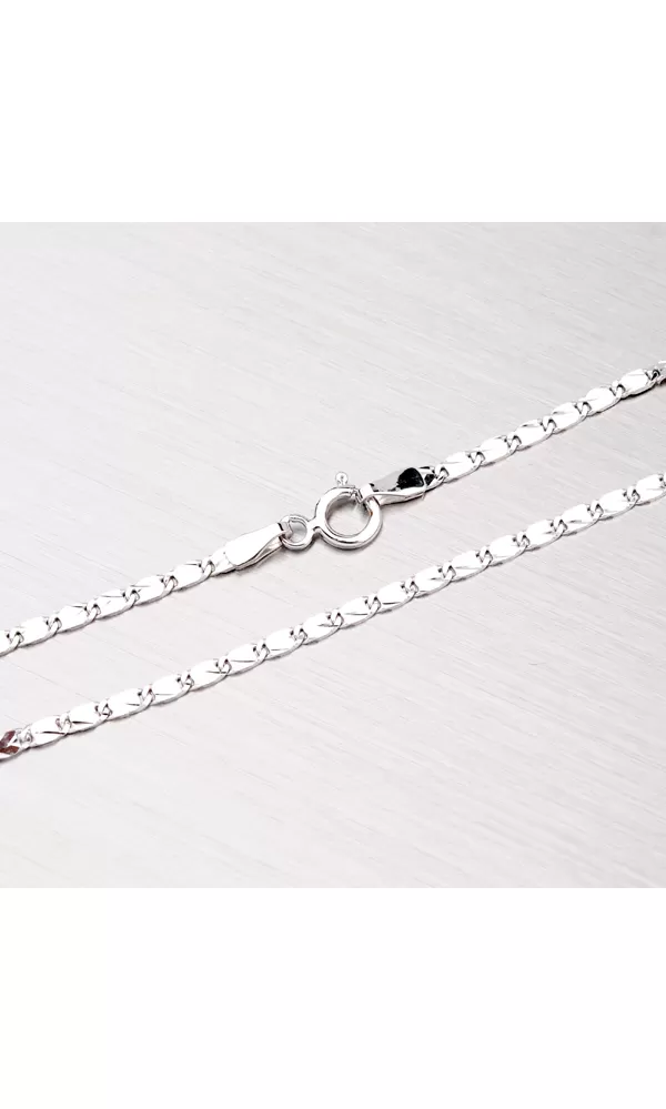 Dámska retiazka s jemným gravírovaním Vás oslní. Vyrobený je z bieleho štrnásťkarátového zlata 585/000 v lesklej povrchovej úprave so zapínaním na perový krúžok. Retiazka bola skontrolovaná puncovým úradom, ktorý overil jeho kvalitu a označil štátnym puncom pre danú rýdzosť.