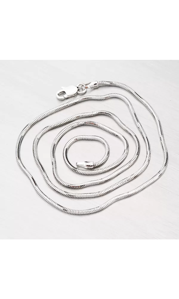 Výrazná zlatá retiazka so zapínaním na karabínu zaujme na prvý pohľad. Táto retiazka je vhodná svojím dizajnom ako pre ženy, tak pre mužov alebo aj pre deti. Retiazka je vyrobená z bieleho štrnásťkarátového zlata 585/1000 a ich tvoria očká pripomínajúce vlniace sa telo hada, prierez retiazky je guľatý. Dĺžku retiazky si vyberte podľa dostupných rozmerov. Ide o precízne spracovanie!