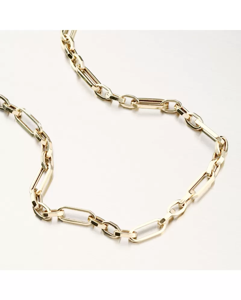 Tento nadčasový zlatý náhrdelník zaujme výrazným vzorom retiazky, ktorý spája moderný lineárny dizajn s klasickou eleganciou. Precízne spracované podlhovasté bunky vytvárajú harmonický rytmus a krásne odrážajú svetlo pri každom pohybe. Náhrdelník pôsobí luxusne, no zároveň ľahko a prirodzene — skvele doplní každodenný outfit aj výnimočný večerný šatník. Ideálna voľba pre tých, ktorí hľadajú šperk s osobitým štýlom a trvalou hodnotou.
