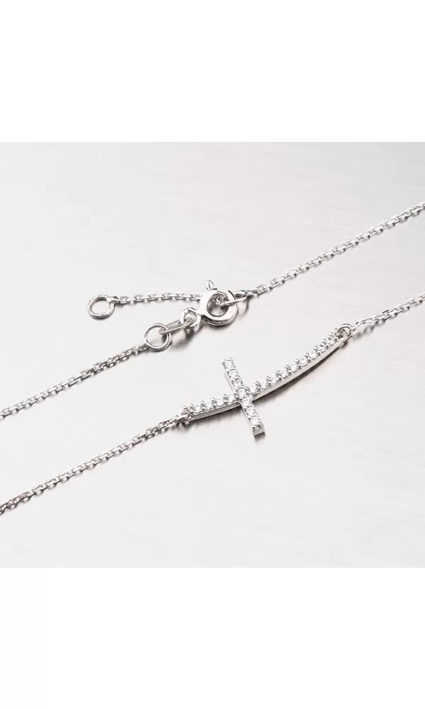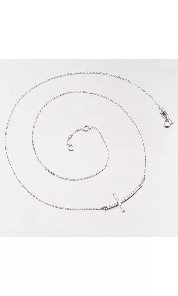 Jemný náhrdelník upoutá křížkem, který je přímo upevněn na řetízku. Křížek je lehce prohlý, tak aby dokonale splynul s vaším dekoltem. Přívěsek zdoben po celé ploše zirkony v briliantovém brusu a na řetízku skvěle vyniká. Náhrdelník je vyrobený z bílého čtrnáctikarátového zlata 585/000 v lesklé povrchové úpravě se zapínáním na pérový kroužek