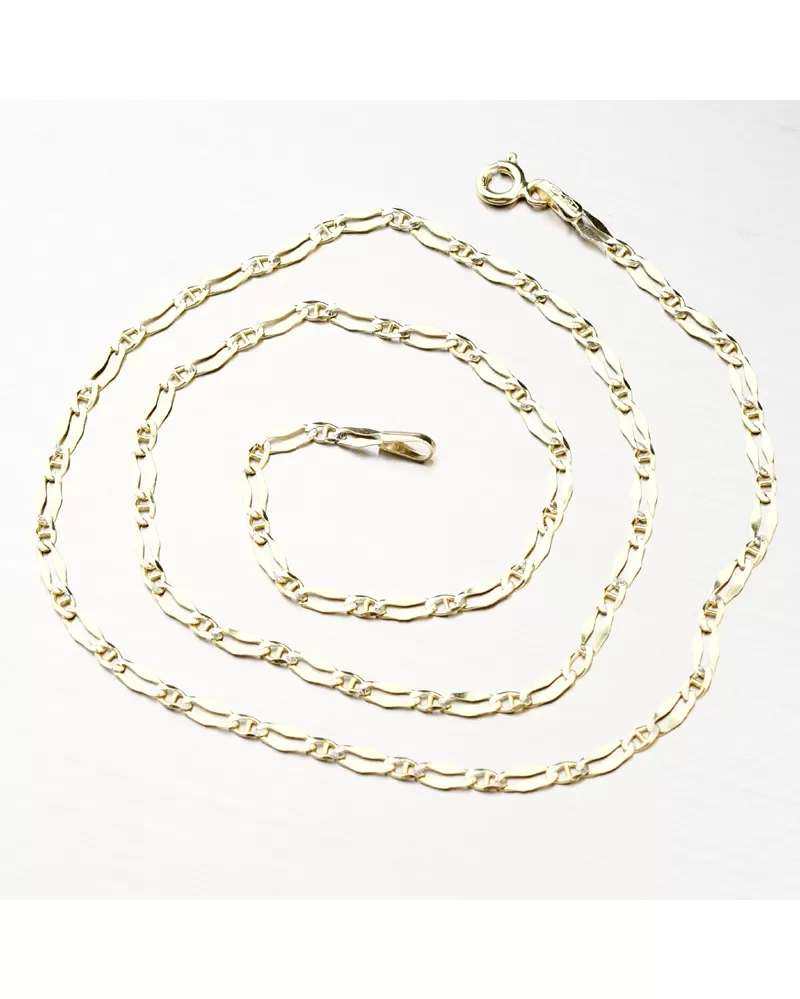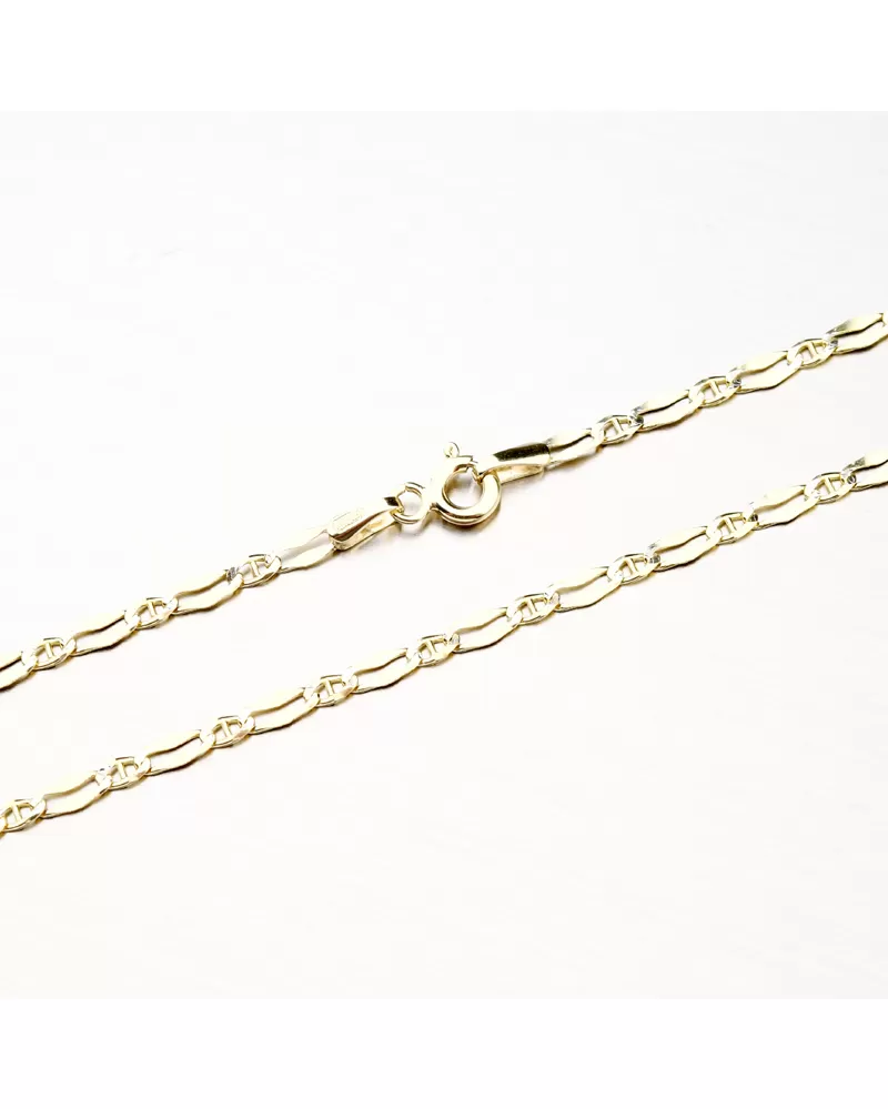 Řetízek je vyrobený ze žlutého čtrnáctikarátového zlata 585/000 v lesklé povrchové úpravě s gravírováním se zapínáním na pérový kroužek.