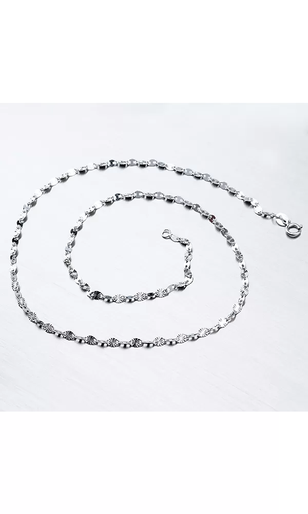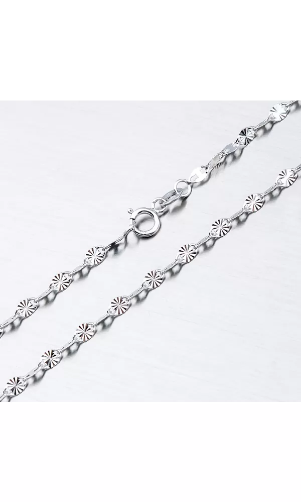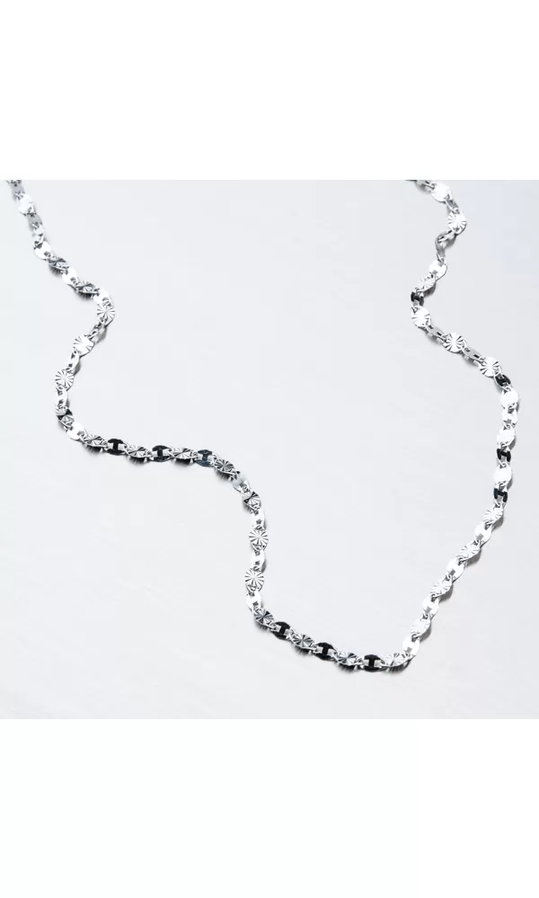 Krásna dámska retiazka je tvorená z plošiek v kombinácii lesklej povrchovej úprav a gravírovania. Gravírovanie je prevedené diamantovým rycím hrotom, ktorý zaisťuje najvyšší možný lesk gravírovaných facet. Retiazka je vhodná na každodenné nosenie a dá sa nosiť s príveskom ale krásna je aj bez prívesku vďaka žiarivému gravírovaniu.