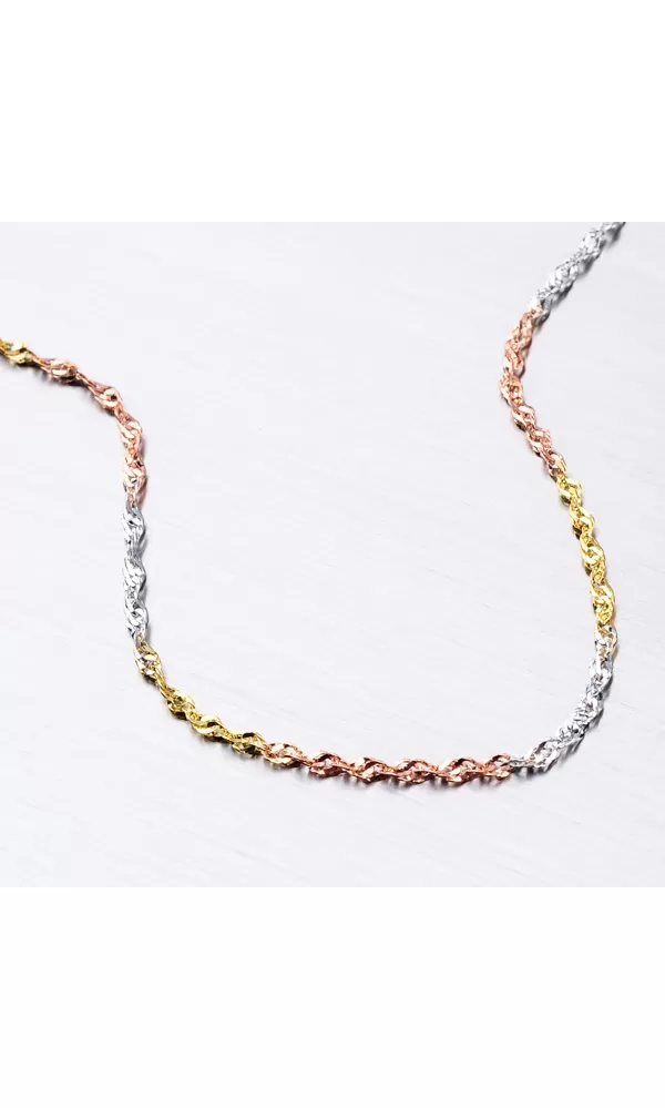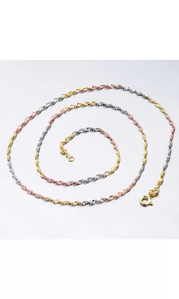 Retiazka je vyrobená zo žltého štrnásťkarátového zlata 585/000 v lesklej povrchovej úprave so zapínaním na perový krúžok.