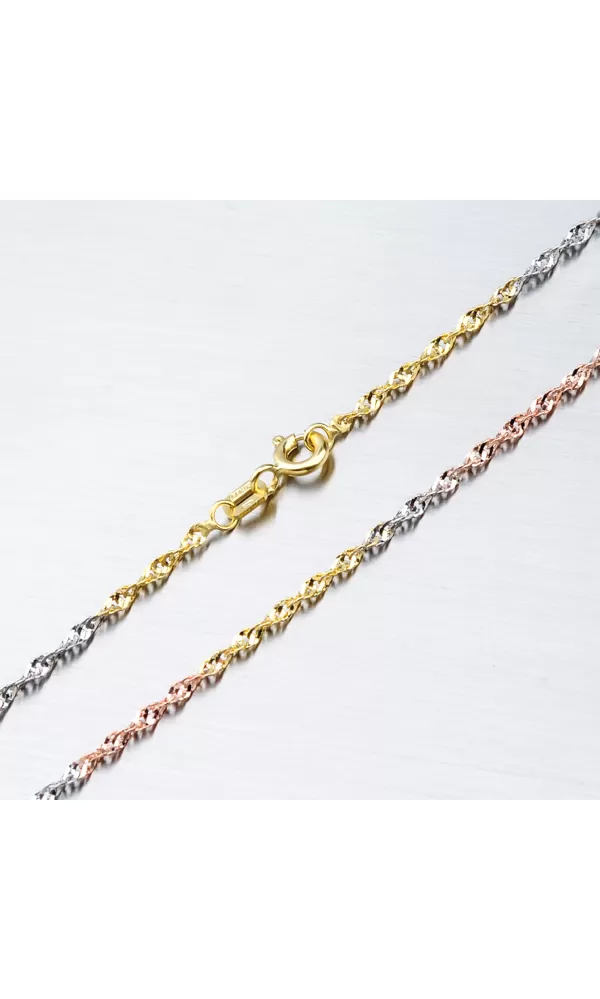 Zlatá retiazka Lambáda je zdobená bielou a ružovou farbou zlata, Toto zloženie farieb len tak neuvidíte. Tak buďte originálni a ozdobte sa touto retiazkou.