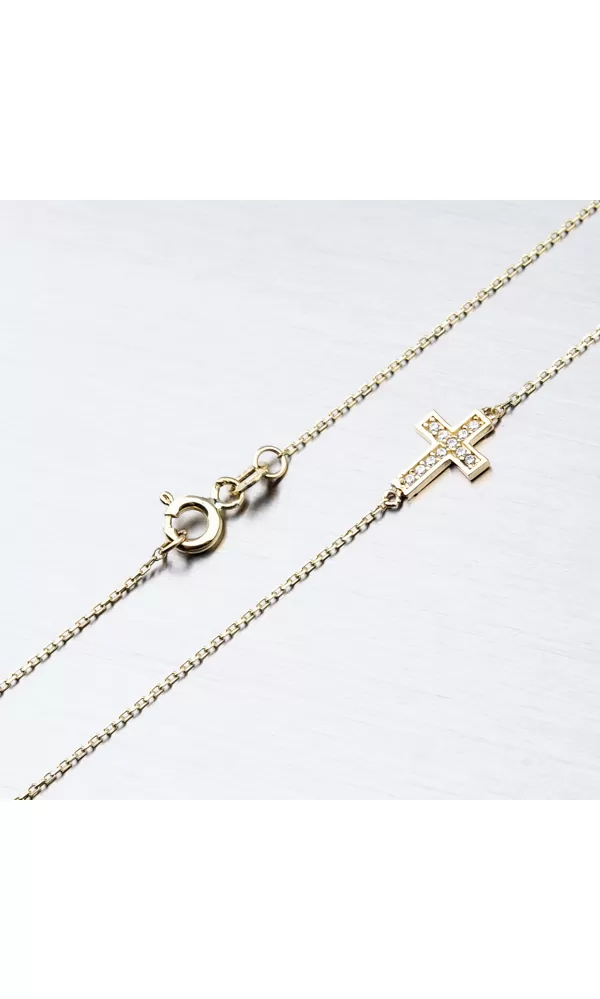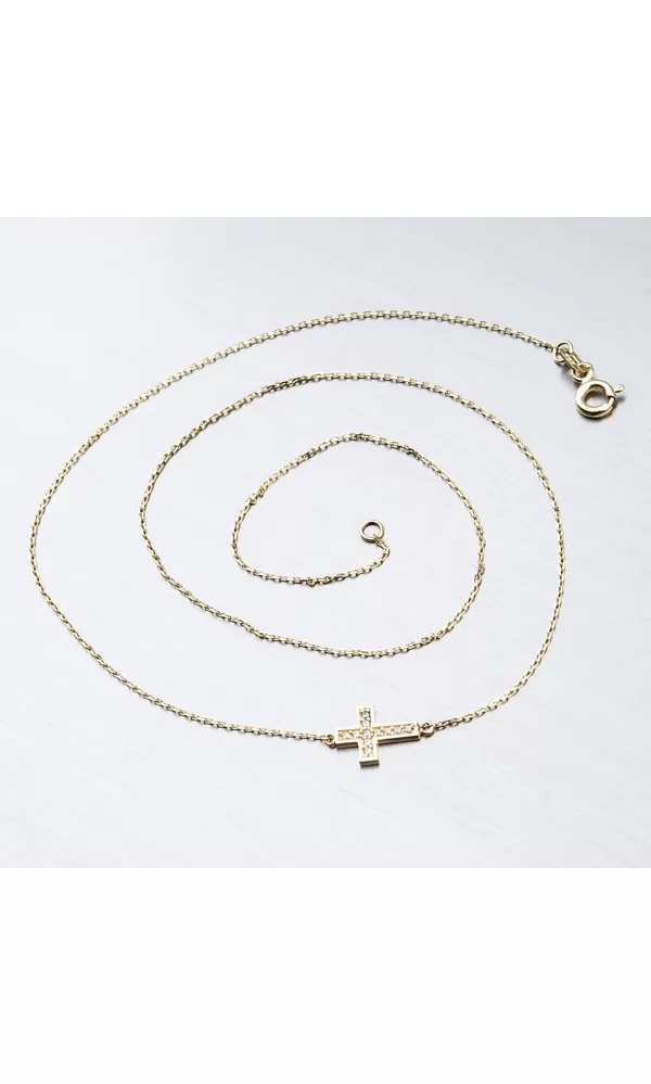 Ste milovníčka krížov? Tak to vás zaujme táto zlatá retiazka, ktorá je zdobená práve krížom. Kríž je pripevnený na retiazku na pevno očkami a umiestnený ľahko bližšie k strane. Jeho povrch je leštený do vysokého lesku a zdobia ho žiarivé zirkóny v briliantovom bruse. Retiazka Anker je pevná a príjemne hladká.