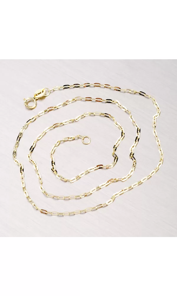 Retiazka Anker je vyrobená zo žltého štrnásťkarátového zlata 585/000 v lesklej povrchovej úprave so zapínaním na perový krúžok. Retiazka je gravírovaná na bočných stranách za pomoci nástroja s diamantovým hrotom, ktorý dodáva šperku maximálny lesk. Retiazka je vhodná na jednoduché aj zdobnejšie prívesky.