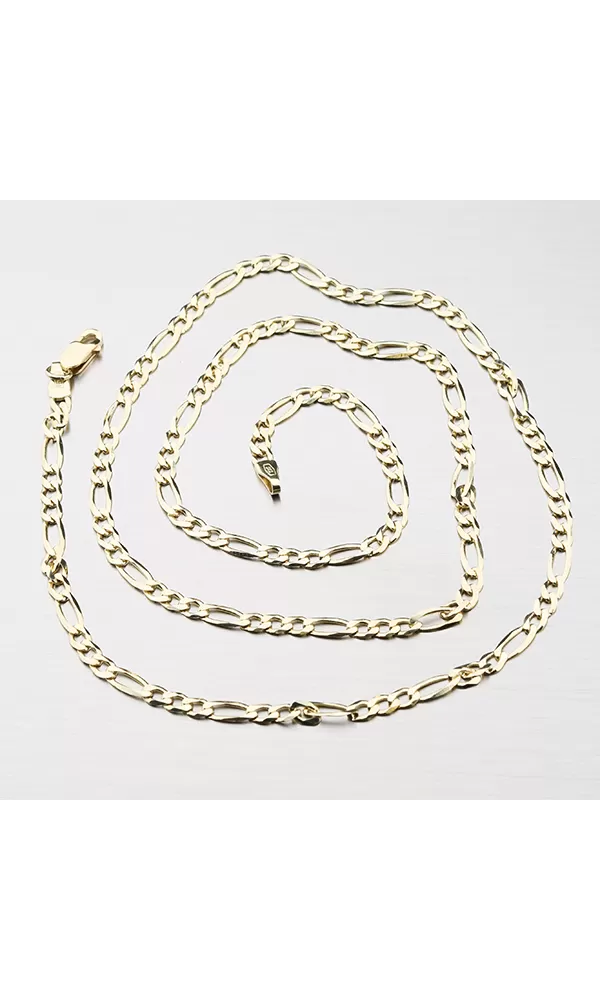 Retiazka typu figaro 3+1 vyrobená zo žltého štrnástich karátového zlata 585/000 v lesklej povrchovej úprave so zapínaním na perový krúžok. Klasika v podobe retiazky typu Figaro je v silnejšej verzii obľúbená najmä u pánov. Tento vyhľadávaný vzor je typický tým, že prepojí tri menšie a jedno väčšie oko. Pre jeho nadčasovosť sa radí medzi unisex retiazky.