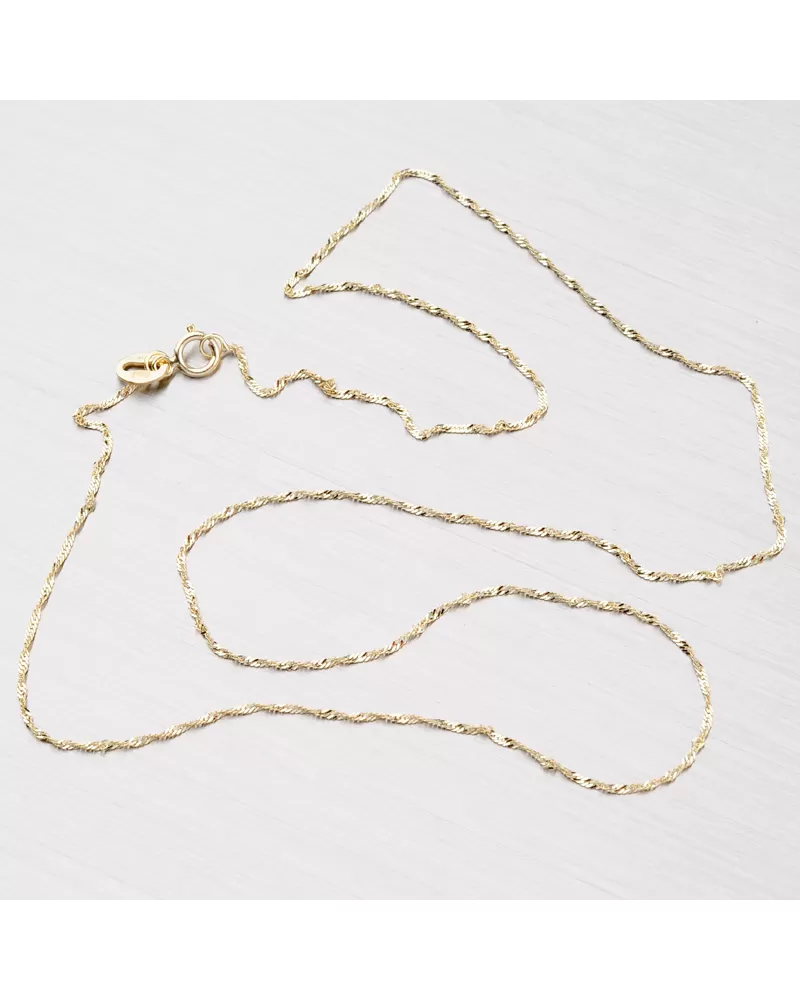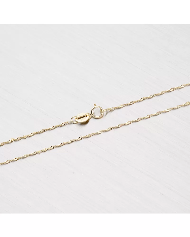 Milujete decentné šperky? Túto jemnú retiazku si zamilujete. Retiazka lambada je krútený šperk, ktorý práve vďaka tomuto prevedeniu odráža dokonale svetlo. Aj napriek svojej jemnosti bude žiariť a zdobiť vás kamkoľvek pôjdete. Tento štýl retiazky je veľmi pevný a spoľahlivý. Retiazka typu lambada vyrobená zo žltého štrnásťkarátového zlata 585/000 v lesklej povrchovej úprave so zapínaním na perový krúžok. Retiazka bola skontrolovaná puncovým úradom, ktorý overil jeho kvalitu a označil štátnym puncom pre danú rýdzosť.