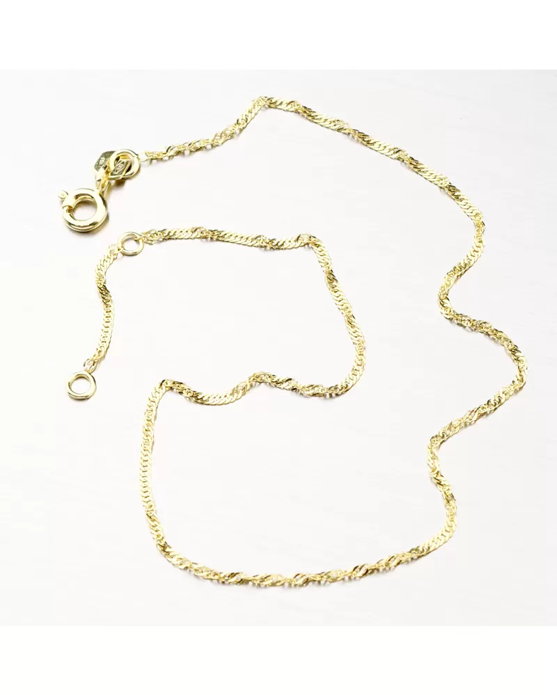 Retiazka na nohu typu lambada vyrobená zo žltého štrnástich karátového zlata 585/000 v lesklej povrchovej úprave so zapínaním na perový krúžok. … Celý popis