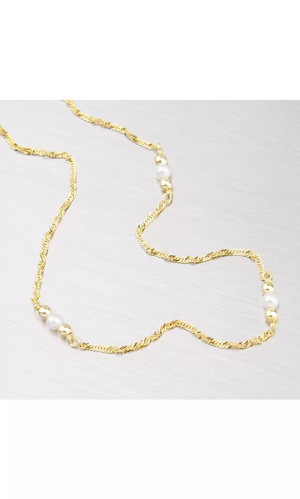 Retiazka typu lambada s tromi perličkami bielej farby vyrobená zo žltého štrnásťkarátového zlata 585/000 v lesklej povrchovej úprave so zapínaním na… Celý popis