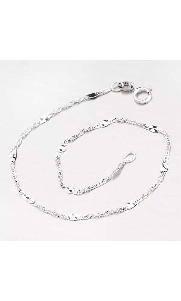 Táto veľmi zaujímavá retiazka je vyrobená z bieleho štrnástich karátového zlata s rýdzosťou 585/1000 a zaujme svojimi plieškami, ktoré sú povrchovo upravené lesklými facetami robenými za pomoci diamantového hrotu. Originálne spracovanie Vás neprestane baviť. Táto retiazka sa stane obľúbeným šperkom, ktorý nebudete chcieť zložiť. Retiazka sa zapína na bezpečnú karabínu.