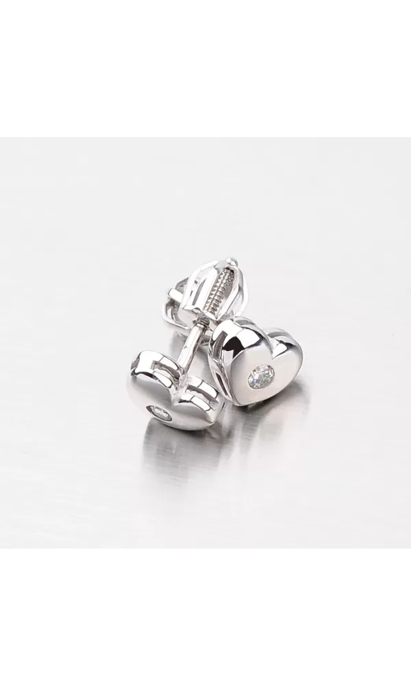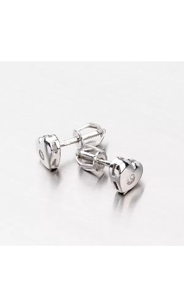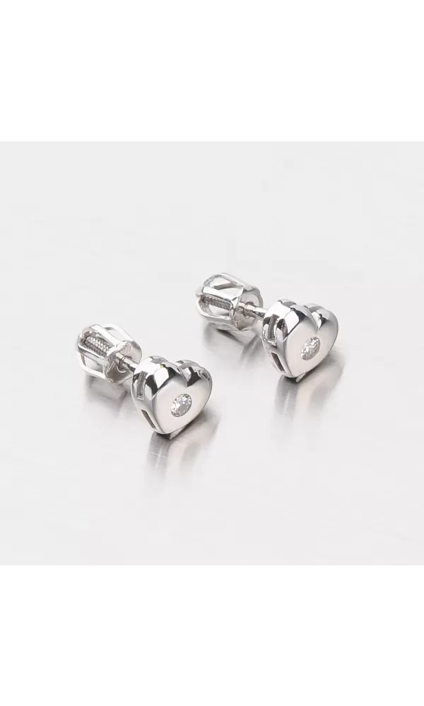 Decentné krásne náušnice pre dámy vyrobené zo štrnástich karátového bieleho zlata s rýdzosťou 585/1000 s lesklou povrchovou úpravou. Náušnice sú vyrobené v tvare srdiečka a sú osadené každá jedným zirkónom presne uprostred. Náušnice sa zapínajú na bezpečnú skrutku a tak nehrozí strata náušníc.